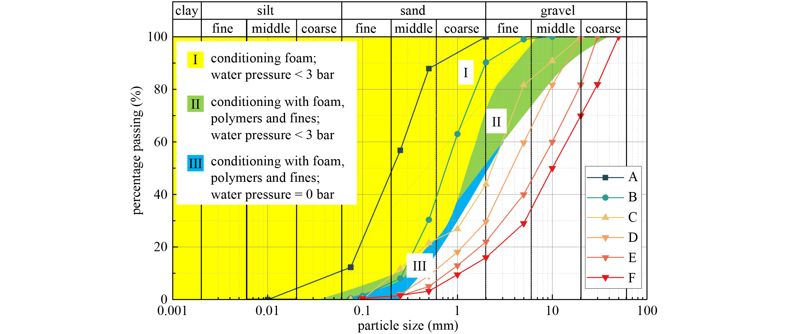 Soil conditioning is essential for addressing the stratum applicability problem of earth pressure balance (EPB) shields. Under high water pressures, EPB shields spew water and soil when excavating coarse-grained strata. Typically, foam combined with polymers and slurry is used to solve spewing. However, in current techniques, slurry, foam, and the other agents are mixed with soil separately, their synergistic effect is seldom realized. In this study, an anionic surfactant was used to foam in bentonite slurry to form bubble–slurry to maximize the synergy between bubbles and slurry. The slump, volume stability, and permeability test of bubble–slurry-conditioned sand was conducted to examine the conditioning effect, and the stratum applicability of bubble–slurry was determined from the perspective of permeability. It was found that the conditioning effect of bubble–slurry in coarse gravel soil was excellent and could expand the applicability of EPB shields. The main stabilization mechanism of bubble–slurry is that bentonite particles provide a space barrier for bubbles. And three seepage modes of bubble–slurry-conditioned sand were innovatively defined, and the occurrence conditions of the three seepage modes were analyzed according to the permeability coefficient of sand, initial dynamic shear force of bubble–slurry, and hydraulic gradient.