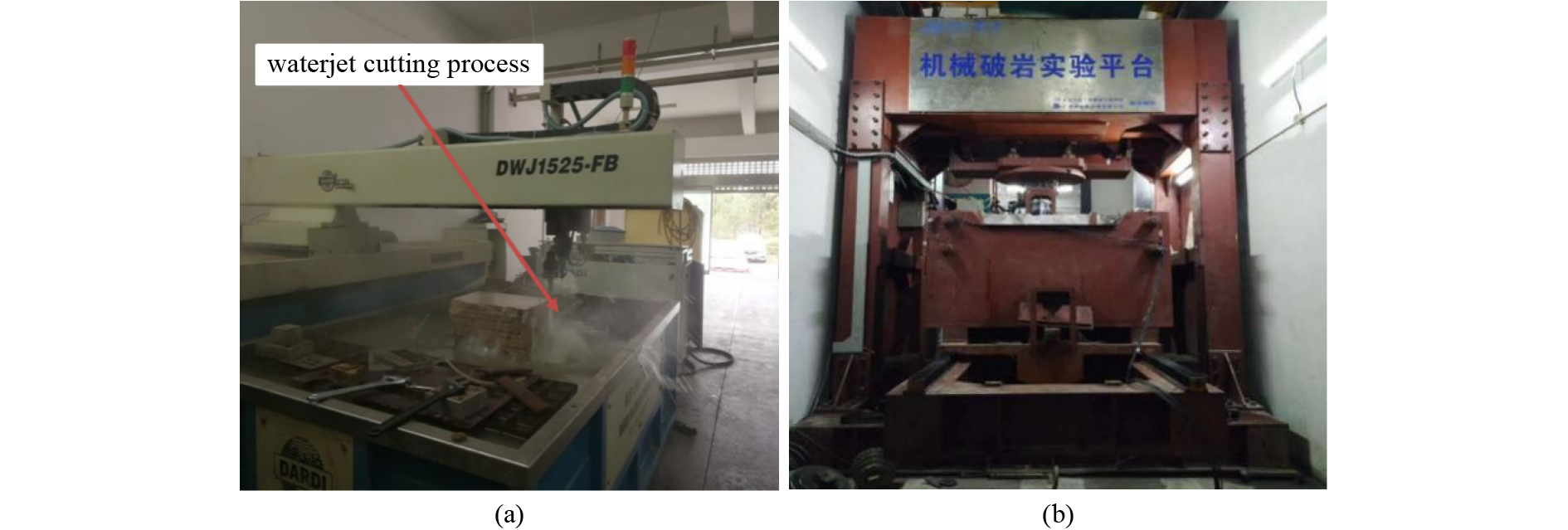 The tunnel boring machine (TBM) is typically used in hard-rock tunnel excavation. Owing to the unsatisfactory adaptability of TBM to the surrounding rock, when crossing high-strength and high-wear strata, the TBM can easily cause defects, such as abnormal wear on cutters and overload damage to bearings, thus affecting the construction efficiency and cost. Therefore, high-pressure waterjet technology should be applied to assist in rock breaking for efficient TBM tunneling. In this study, the effects of water pressure, nozzle diameter, and nozzle speed on cutting are investigated via laboratory experiments of cutting hard rock using high-pressure waterjets. The penetration performance of the TBM under different water pressures is investigated via a field industrial penetration test. The results show that high-pressure waterjets are highly efficient for rock breaking and are suitable for industrial applications, as they can accommodate the advancing speed of the TBM and achieve high-efficiency rock breaking. However, during the operation of high-pressure waterjets, the ambient temperature and waterjet temperature in the tunnel increase significantly, which weakens the cooling effect of the cutterhead and decreases the construction efficiency of the TBM. Therefore, temperature control and cooling measures for high-pressure waterjets during their long-term operation must be identified. This study provides a useful reference for the design and construction of high-pressure water-jet-assisted cutterheads for breaking road headers.