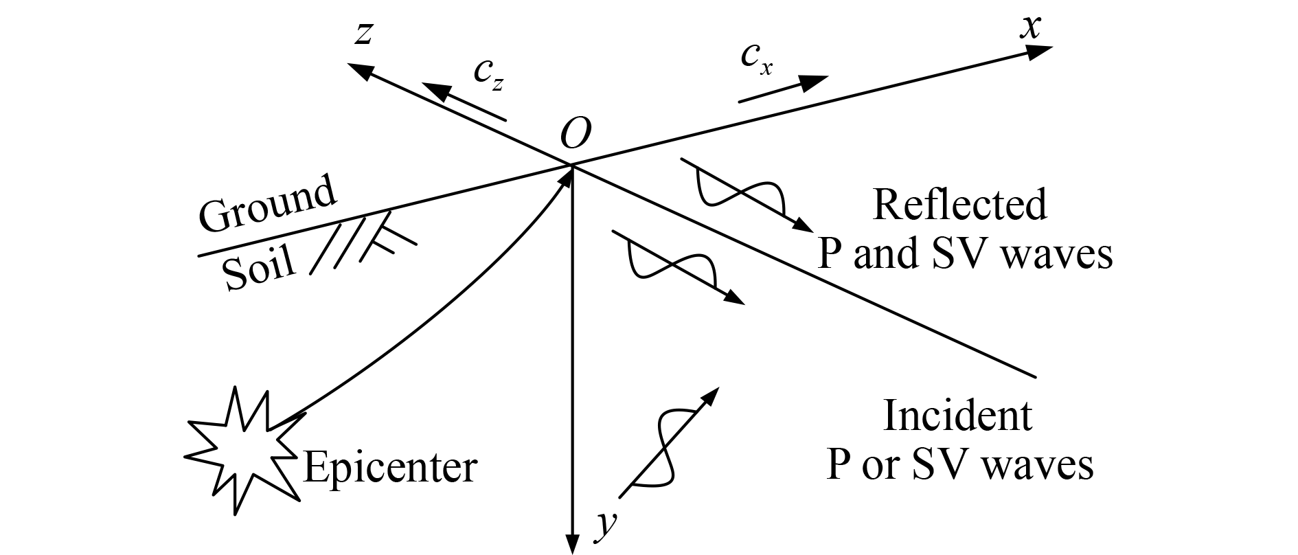 With the three dimensional (3D) oblique incident waves exactly determined for the free field, the soil seismic responses in both frequency and time domains are studied by the 2.5 dimension (2.5D) finite/infinite element method. First, the free-field responses in frequency domain are solved exactly for 3D arbitrary incident P and SV waves, which requires no coordinate conversion or extra effort for SV waves with super-critical incident angles. Next, the earthquake spectra are incorporated by the concept of equivalent seismic forces on the near-field boundary, based only on the displacements input derived for unit ground accelerations of each frequency using the 2.5D approach. For the asymmetric 2.5D finite/infinite element model adopted, the procedure for soil seismic analysis is presented. The solutions computed by the proposed method are verified against those of Wolf’s and de Barros and Luco’s and for inversely calculated ground motions. Of interest is that abrupt variation in soil response occurs around the critical angle on the wave propagation plane for SV waves. In addition, the horizontal displacements attenuate with increasing horizontal incident angle, while the longitudinal ones increase inversely for 3D incident P and SV waves.