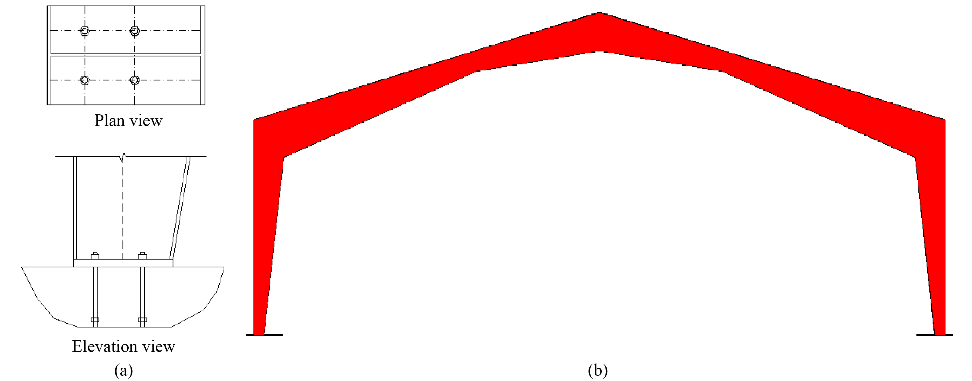 In this paper, a computational approach is undertaken to determine the rotational stiffness and moment capacity provided by typical “pinned” column base-plate connections in low-rise metal buildings by analyzing a wide-range of connection parameters. The most influencing details of the connections on the overall behavior were identified. First, development and validation of high-fidelity computational models using experimental data are described. Then, the validated models were used to perform a parametric study to understand the effect of configurational details on the rotational stiffness and moment capacity of the column base-plate connections with anchor rods between the flanges. Anchor rod diameter, by itself, and in combination with base-plate thickness, was found to be the most influential parameter on the moment capacity of connections with smaller web depths. For larger web depths, the number of anchor rods was influential in the moment capacity, particularly, in one of the loading directions.
