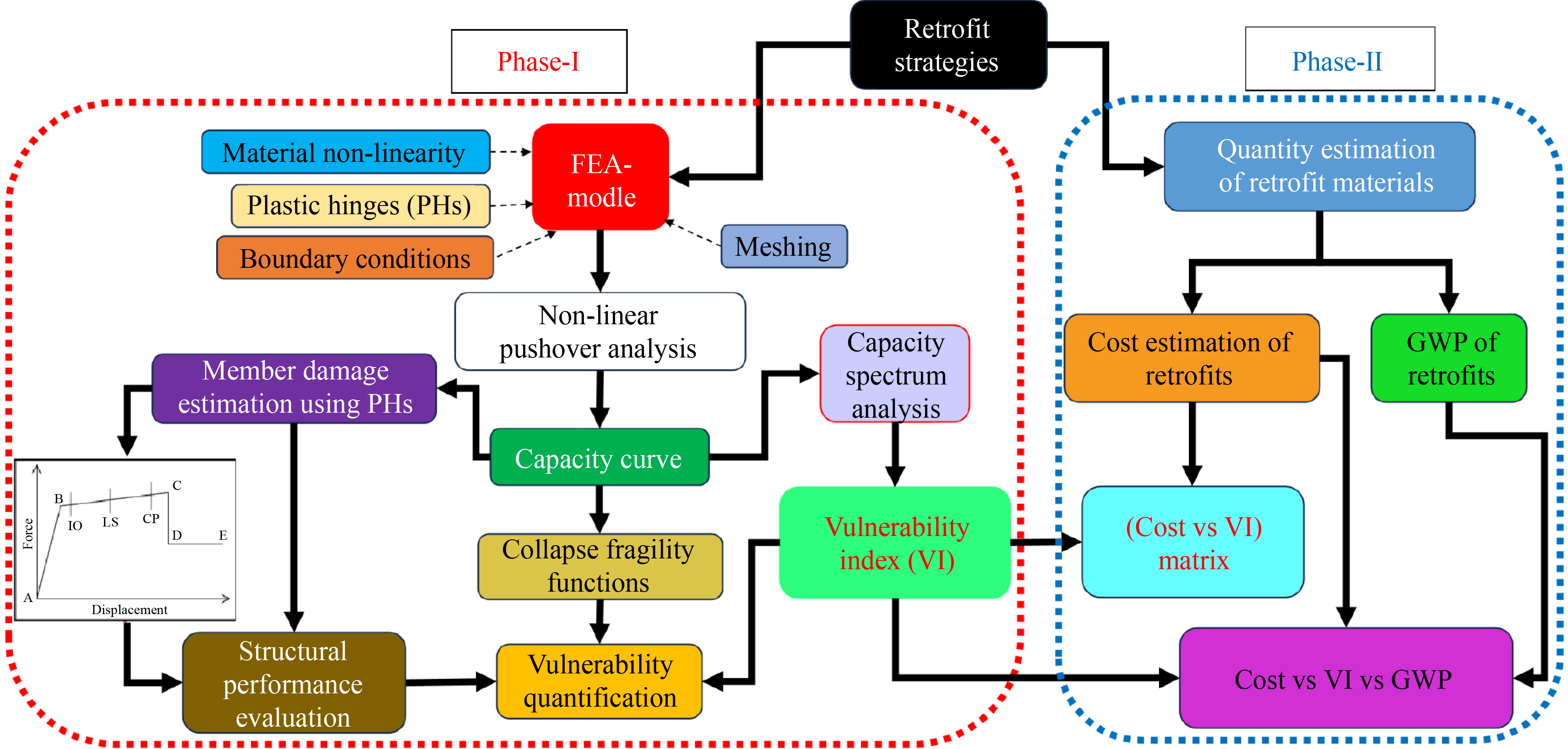 Significant damage to structures has been observed in several major seismic events within the Himalayan region recently, highlighting the need for further investigation into their potential vulnerability. While building codes are frequently improved especially after a huge earthquake disaster, existing structures remain susceptible and should be retrofitted to enhance their performance and decrease vulnerability. This study aims to endorse public safety and well-being by lowering the potential risk of casualties and fatalities resulting from earthquakes effects on existing reinforced concrete (RC) structures, especially in the Himalayan region. The goal is to assess the seismic vulnerability of RC structures and to identify a suitable retrofit solution using a multi-faceted approach, where the impact of the retrofit solution is estimated, based on reducing the seismic vulnerability, retrofit cost, and carbon dioxide (CO2) emission. A multi-story RC frame structure is a case study built in the seismically prone Himalayan region. Various indicators are employed in this study to evaluate the seismic vulnerability of the building including collapse fragility functions, vulnerability index (VI) based on capacity spectrum method, and other soft-story related parameters such as story shear, inter-story drift, plastic hinge mechanism, damage state, and stress history in soft-story columns, in assessing how seismic retrofitting affects structural performance. Four different retrofitting scenarios are considered to reduce the vulnerability of the existing structure so that the optimized one can be selected based on the proposed multi-faceted approach. This study focuses solely on retrofitting ground story columns, as it is expected to have a minimal economic, social, and environmental impact, making it an easy choice for decision-makers to implement. Finally, the cost-effectiveness is quantified based on the retrofit cost and global warming potential of considered retrofit materials, and the optimization of retrofitting strategies based on the proposed multi-faceted approach, using VI, retrofit cost, and CO2 emission.