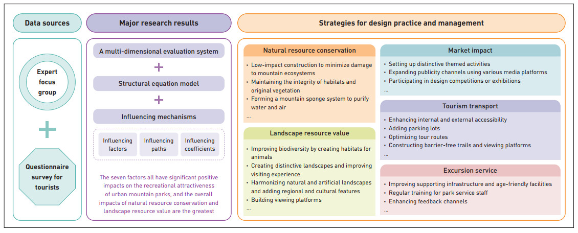 Urban mountain parks (UMPs) are vital green spaces for public leisure and recreation, but their recreational value is often underdeveloped, with few studies examining the influencing mechanisms of UMP recreational attractiveness. To address this issue, this study conducted an empirical investigation in Fuzhou, China. Guided by China's Standard of Rating for Quality of Tourist Attractions, a structural equation model (SEM) of UMP recreational attractiveness was established and tested based on an expert group and a questionnaire survey of 609 tourists. The findings reveal that seven factors—tourism transport, excursion services, tourism safety, integrated management, natural resource conservation, landscape resource value, and market impact—contribute positively to enhancing UMP recreational attractiveness. Among them, natural resource conservation has the highest influence, followed by landscape resource value, indicating that they both play the greatest role in affecting UMP recreational attractiveness. These seven factors are interrelated, with natural resource conservation strongly positively influencing market impact and landscape resource value. This study explored the influencing mechanism of these seven factors on UMP recreational attractiveness, which can provide practical recommendations for enhancing UMP recreational value worldwide.