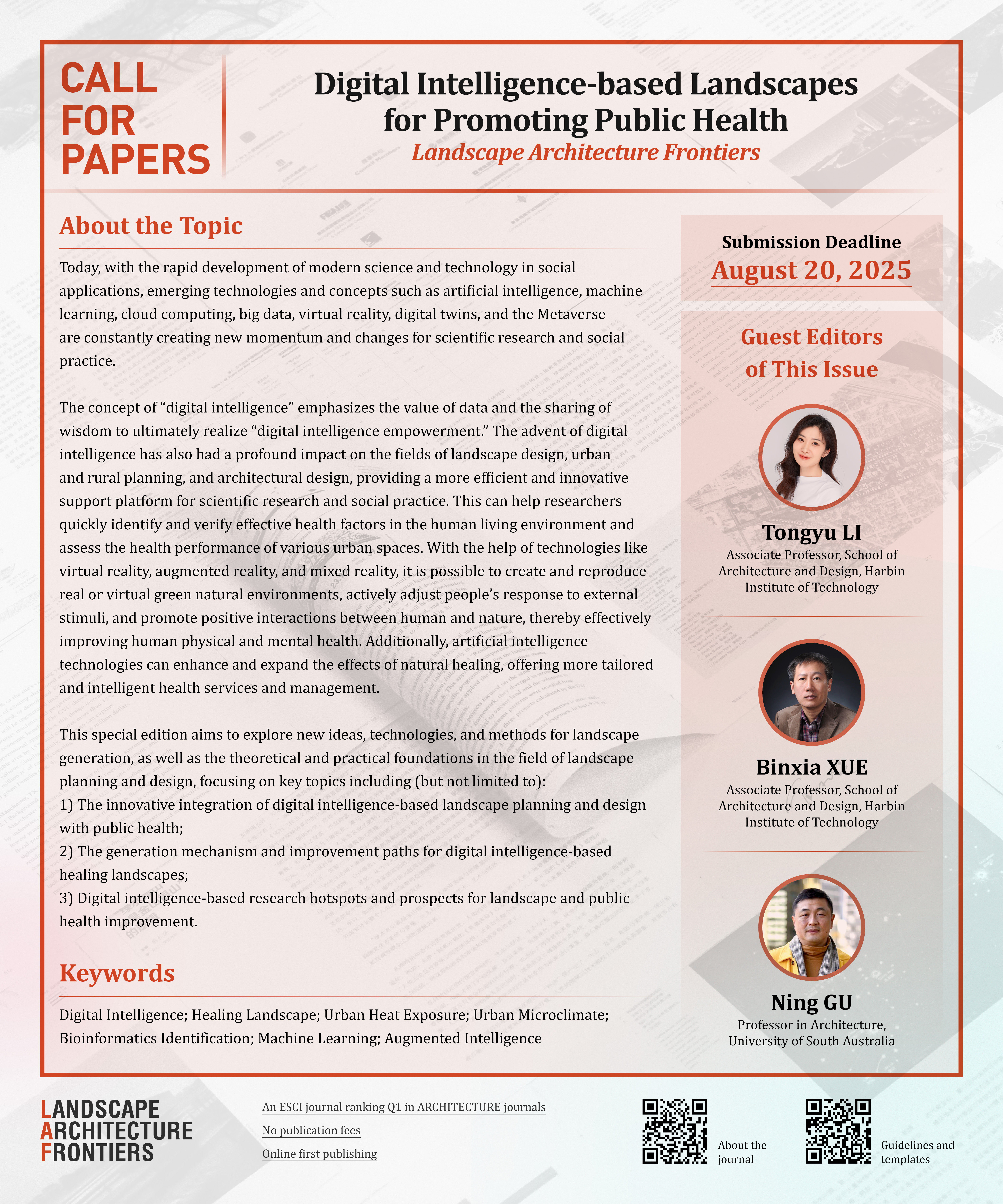 Call for Paper:Digital Intelligence-based Landscapes for Promoting Public Health