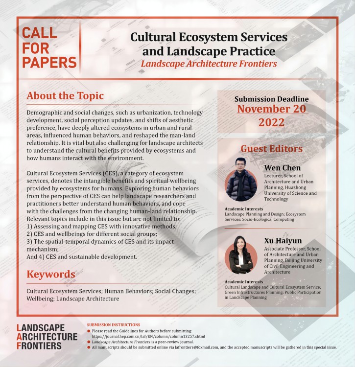 Call for paper Cultural Ecosystem Services and Landscape Practice
