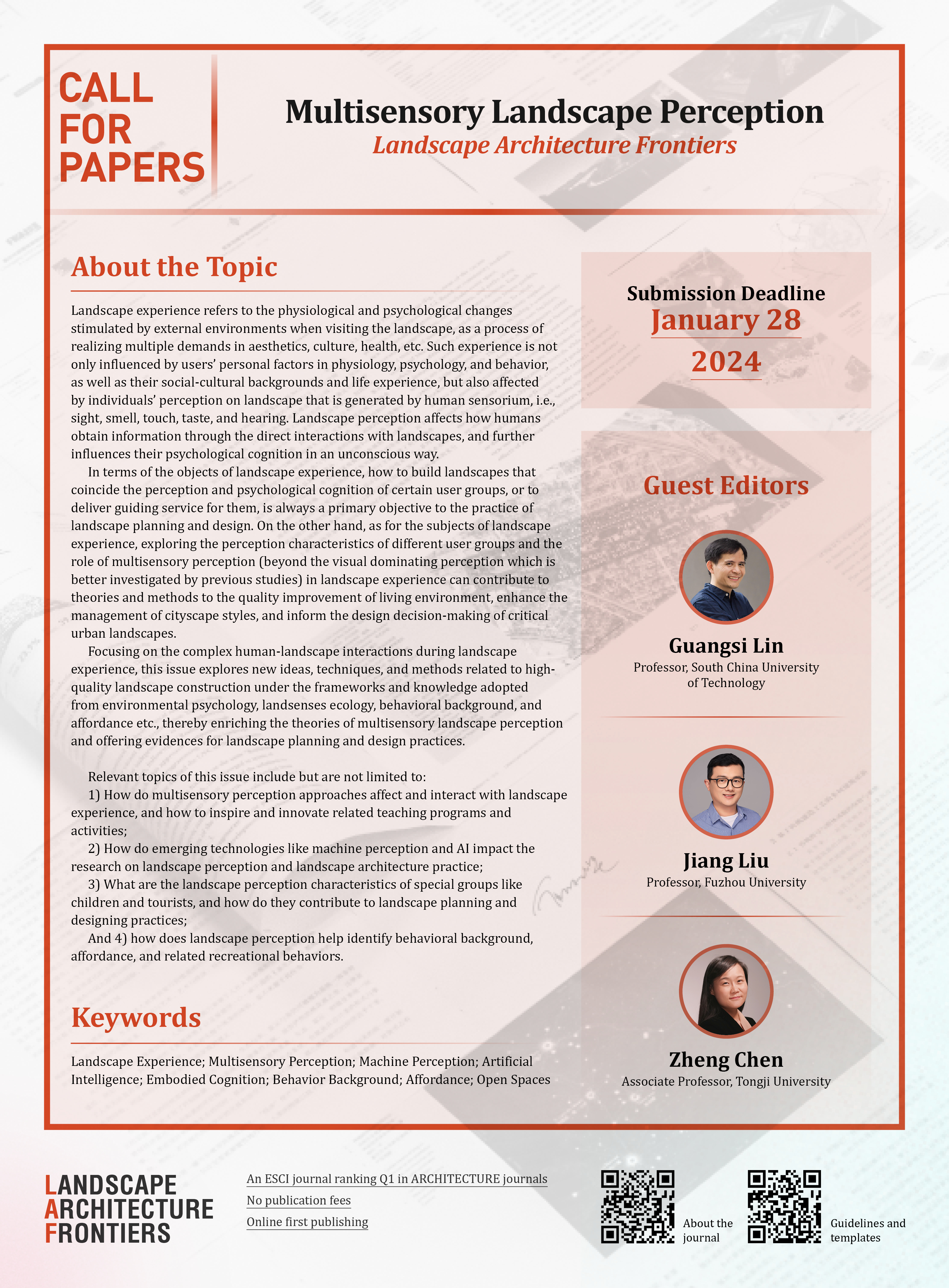 Call for papers: Sustainable Landscape Architecture Supported by Pioneering Sensing Technology