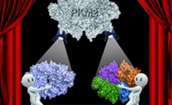Pyruvate kinase isoform M2 (PKM2) plays an important role in cancer metabolism. In this study, we show that post-translational modifications and a patient-derived mutation regulate pyruvate kinase activity of PKM2 through modulating the conformation of the PKM2 tetramer. We determined crystal structures of human PKM2 mutants and proposed a “seesaw” model to illustrate conformational changes between an inactive T-state and an active R-state tetramers of PKM2. Our study reveals the mechanism for dynamic regulation of PKM2 by post-translational modificati [Detail] ...