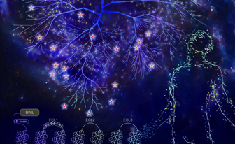 On a vast cosmic background with the human form as a constellation, the phylogenetic tree of the G protein-coupled receptor superfamily is presented with structures that have been determined highlighted as red stars. A snake plot diagram that shows the prototypical 7 transmembrane topology of receptors in this superfamily as well as the target locations for insertion of a protein fusion partner (BRIL) that was used in the studies described by Lv et al. in this issue. This cover signifies the importance of GPCR in the human body and the fact that life science const [Detail] ...