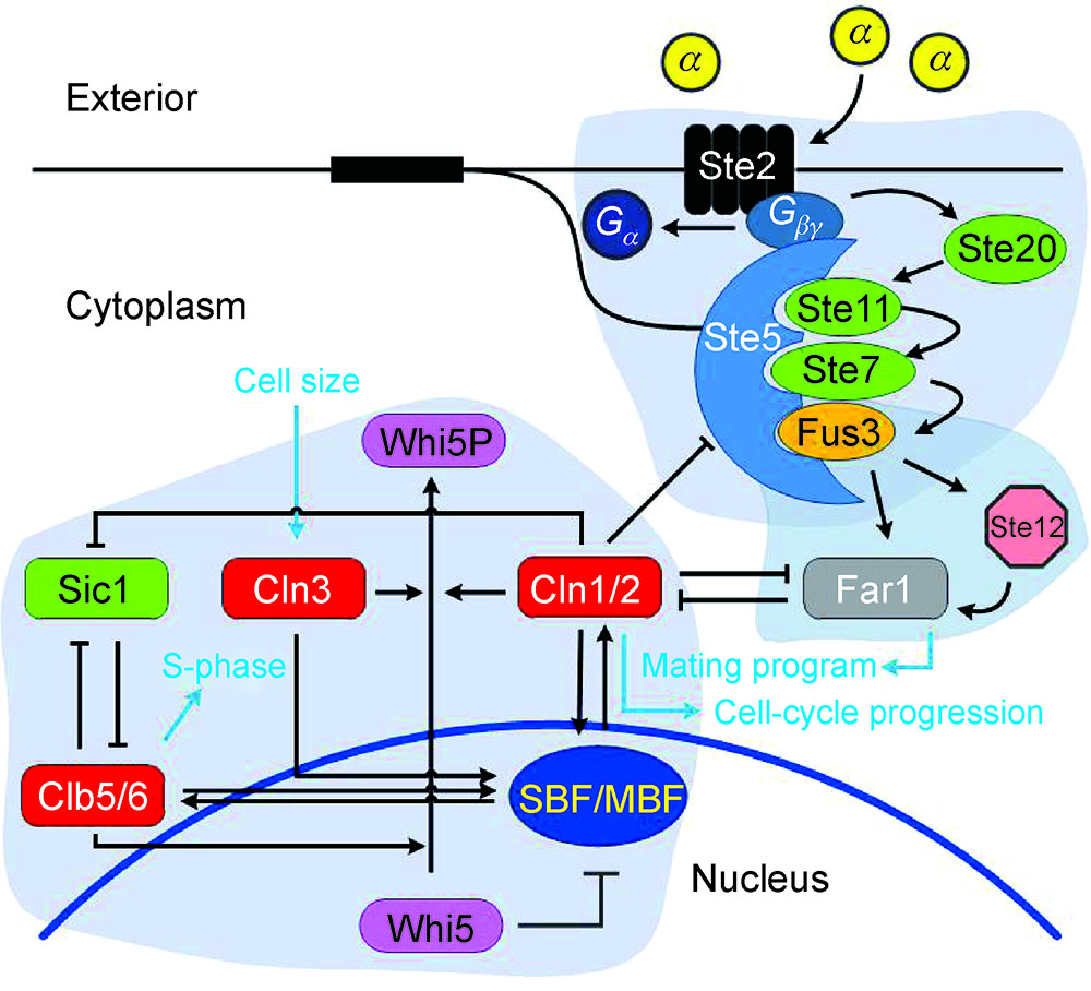 The determination of cell fate is one of the key questions of developmental biology. Recent experiments showed that feedforward regulation is a novel feature of regulatory networks that controls reversible cellular transitions. However, the underlying mechanism of feedforward regulation-mediated cell fate decision is still unclear. Therefore, using experimental data, we develop a full mathematical model of the molecular network responsible for cell fate selection in budding yeast. To validate our theoretical model, we first investigate the dynamical behaviors of key proteins at the Start transition point and the G1/S transition point; a crucial three-node motif consisting of cyclin (Cln1/2), Substrate/Subunit Inhibitor of cyclin-dependent protein kinase (Sic1) and cyclin B (Clb5/6) is considered at these points. The rapid switches of these important components between high and low levels at two transition check points are demonstrated reasonably by our model. Many experimental observations about cell fate decision and cell size control are also theoretically reproduced. Interestingly, the feedforward regulation provides a reliable separation between different cell fates. Next, our model reveals that the threshold for the amount of WHIskey (Whi5) removed from the nucleus is higher at the Reentry point in pheromone-arrested cells compared with that at the Start point in cycling cells. Furthermore, we analyze the hysteresis in the cell cycle kinetics in response to changes in pheromone concentration, showing that Cln3 is the primary driver of reentry and Cln1/2 is the secondary driver of reentry. In particular, we demonstrate that the inhibition of Cln1/2 due to the accumulation of Factor ARrest (Far1) directly reinforces arrest. Finally, theoretical work verifies that the three-node coherent feedforward motif created by cell FUSion (Fus3), Far1 and STErile (Ste12) ensures the rapid arrest and reversibility of a cellular state. The combination of our theoretical model and the previous experimental data contributes to the understanding of the molecular mechanisms of the cell fate decision at the G1 phase in budding yeast and will stimulate further biological experiments in future.