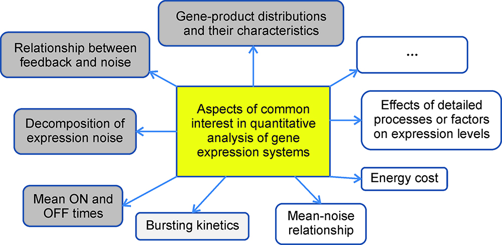 Gene expression is a complex biochemical process, involving many specific processes such as transcription, translation, switching between promoter states, and regulation. All these biochemical processes inevitably lead to fluctuations in mRNA and protein abundances. This noise has been identified as an important factor underlying the observed phenotypic variability of genetically identical cells in homogeneous environments. Quantifying the contributions of different sources of noise using stochastic models of gene expression is an important step towards understanding fundamental cellular processes and cell-to-cell variability in expression levels. In this paper, we review progresses in quantitative study of simple gene expression systems, including some results that we have not published. We analytically show how specific processes associated with gene expression affect expression levels. In particular, we derive the analytical decomposition of expression noise, which is important for understanding the roles of the factorial noise in controlling phenotypic variability. We also introduce a new index (called attribute factor) to quantify expression noise, which has more advantages than the commonly-used noise indices such as noise intensity and Fano factor.