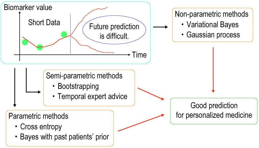 We review our studies on how to identify the most appropriate models of diseases, and how to determine their parameters in a quantitative manner given a short time series of biomarkers, using intermittent androgen deprivation therapy of prostate cancer as an example. Recently, it has become possible to estimate the specific parameters of individual patients within a reasonable time by employing the information concerning other previous patients as a prior. We discuss the importance of using multiple mathematical methods simultaneously to achieve a solid diagnosis and prognosis in the future practice of personalized medicine.