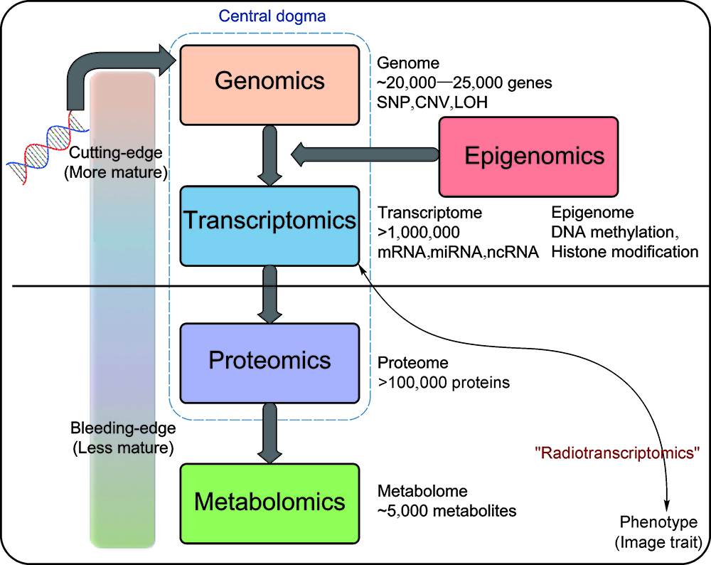 High-throughput technologies and computational methods are transforming biology from a qualitative, descriptive discipline into a quantitative, multi-parameter field. The wealth of publically available “big data” has promoted a paradigm shift in medical research. With the increase of integrative efforts across disciplines, a higher emphasis has been put on using data to define and drive hypotheses. Through a synergistic coupling of molecular indexes from transcriptomics, phenotypic traits from imaging, and clinical data from medical records, “rad [Detail] ...