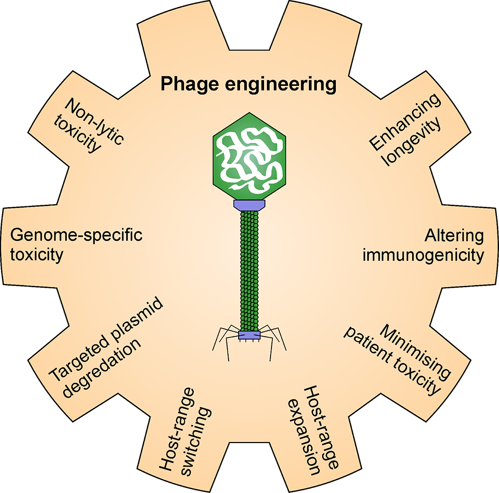 Conclusions: Advances in molecular biology and synthetic biology have enabled rapid progress in the field of phage engineering, with this article highlighting a number of promising strategies developed to optimise phages for the treatment of bacterial disease. Whilst many of the same issues that have historically limited the use of phages as therapeutics still exist, these modifications, or combinations thereof, may form a basis upon which future advances can be built. A focus on rigorous in vivo testing and investment in clinical trials for promising candidate phages may be required for the field to truly mature, but there is renewed hope that the potential benefits of phage therapy may finally be realised.