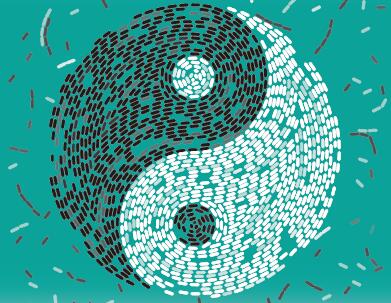 The Yin and Yang of bacteria: the Chinese philosophical concept of Yin and Yang symbolizes how two opposing forces can harmoniously coincide. This particular Yin and Yang is made up of two types of bacteria, black and white, representing how competitive strains of bacteria can behave in paradoxically mutualistic ways. As Sadeghpour et al. show in this issue, if two strains of bacteria down-regulate transcription in one another, the resulting system can oscillate. As one strain wins transcriptionally, the other gains a growth advantage that allows it to eventually [Detail] ...
