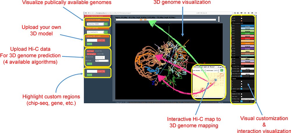Conclusions: As a user-friendly tool, HiC-3DViewer enables the visualization of inter/intra-chromatin interactions and gives users the flexibility to customize the look-and-feel of the 3D structure with a simple click. HiC-3DViewer is implemented in Javascript and Python, and is freely available at: http://bioinfo.au.tsinghua.edu.cn/member/nadhir/HiC3DViewer/. Supplementary information (User Manual, demo data) is also available at this website.