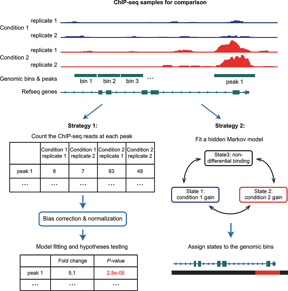 Results: Here, we briefly review the computational tools developed in recent years for differential binding analysis with ChIP-seq data. The methods are extensively classified by their strategy of statistical modeling and scope of application. Finally, a decision tree is presented for choosing proper tools based on the specific dataset.