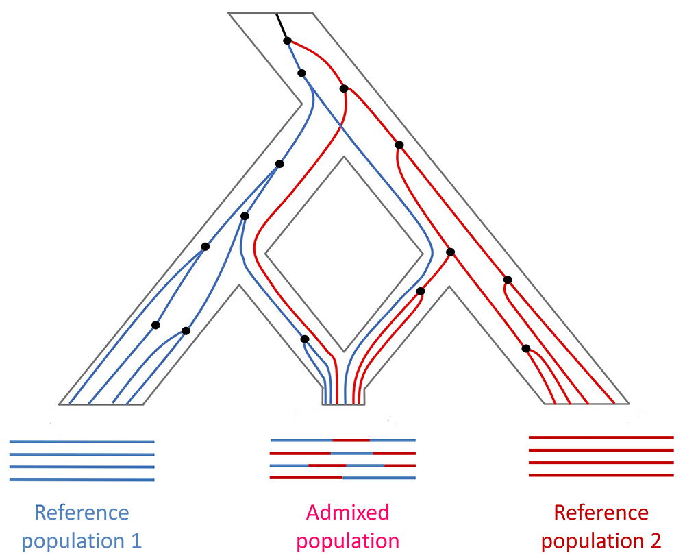 Background: Genetic admixture refers to the process or consequence of interbreeding between two or more previously isolated populations within a species. Compared to many other evolutionary driving forces such as mutations, genetic drift, and natural selection, genetic admixture is a quick mechanism for shaping population genomic diversity. In particular, admixture results in “recombination” of genetic variants that have been fixed in different populations, which has many evolutionary and medical implications.