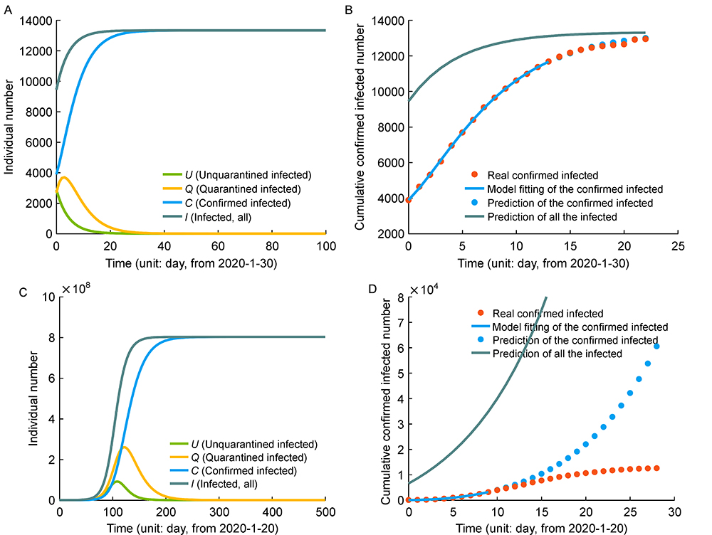 Conclusions: We suggest that rigorous quarantine and control measures should be kept before early March in Beijing, Shanghai, Guangzhou and Shenzhen, and before late March in Hubei. The model can also be useful to predict the trend of epidemic and provide quantitative guide for other countries at high risk of outbreak, such as South Korea, Japan, Italy and Iran.