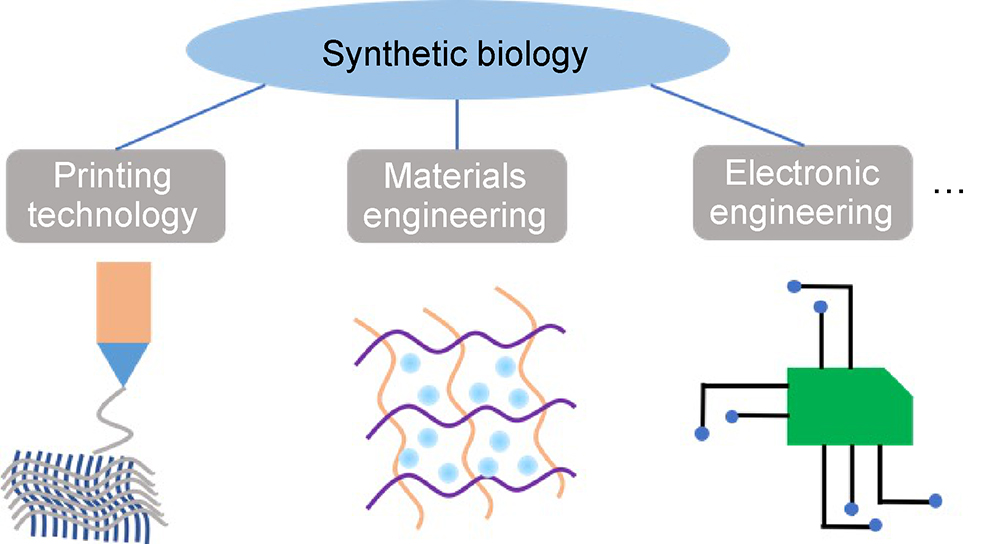 Conclusions: In this review, we will focus on the recent achievements in new materials and devices assembly, next generation therapeutics development and versatile manufacturing by combining the synthetic gene circuits, various tools and technologies from multiple fields, such as printing technology, material engineering and electronic engineering.