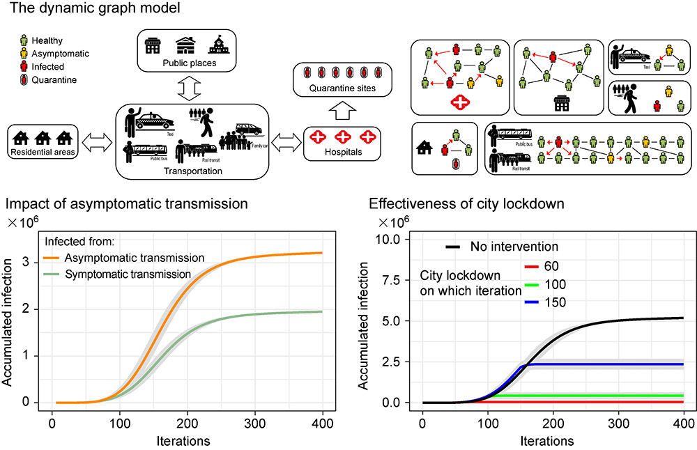Results: We demonstrated the impact of asymptomatic transmission in this outbreak and showed the effectiveness of city lockdown to halt virus spread within a city. We further illustrated that sudden emergence of a large number of cases could overwhelm the city medical system, and external medical aids are critical to not only containing the further spread of the virus but also reducing fatality.