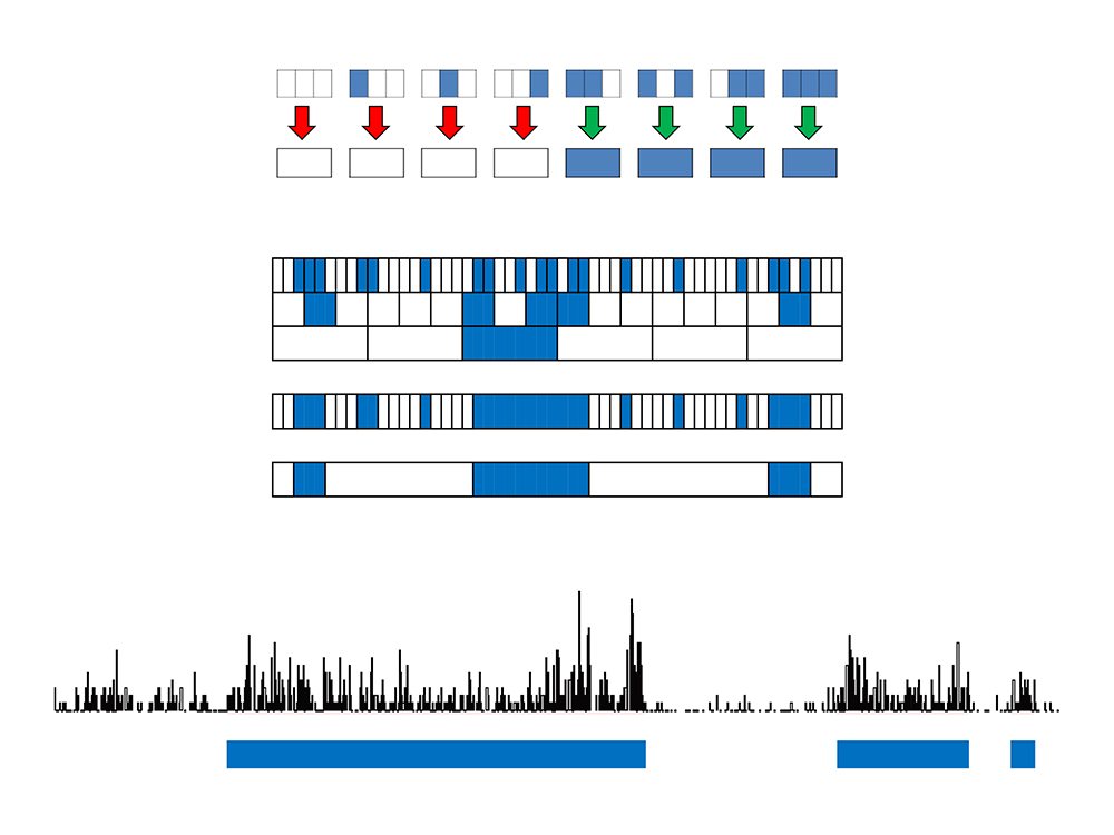 Histone modifications play an important role in defining chromatin states and regulating gene expression. Many histone modifications, such as H3K27me3 and H3K9me3, form broad domains in the genome. Measured by ChIP-seq, board histone domains look like mountain ridges in the data and are more difficult to identify than sharp peaks. In this issue, Zang et al. present a computational method, RECOGNICER, for identifying cross-scale board domains from ChIP-seq data using a coarse-graining approach. For details please refer to the article by Zang et al. in pp. [Detail] ...
