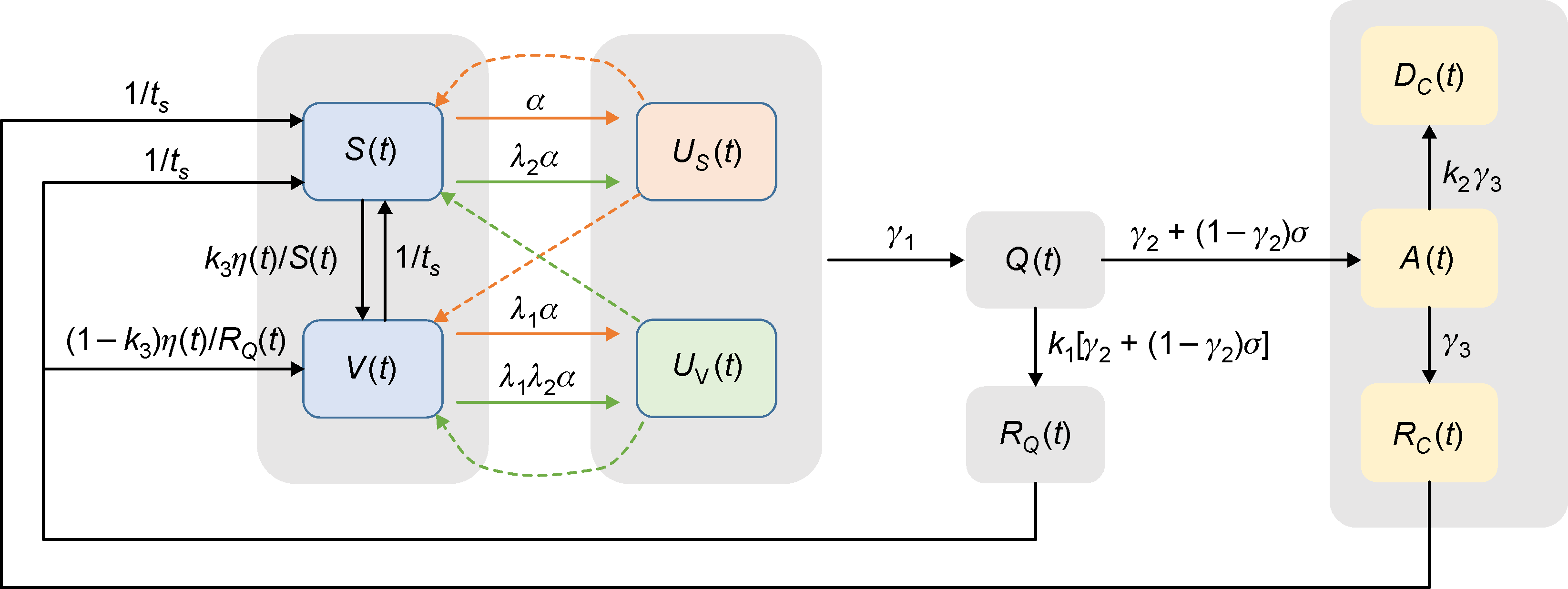 Conclusions: Overall, the daily vaccination rate should be decided according to vaccine efficacy and immunity duration to achieve herd immunity. In some situations, vaccination alone cannot stop the pandemic, and NPIs are necessary to supplement vaccination and accelerate the end of the pandemic. Considering that vaccine efficacy and duration of immunity may be reduced for new mutant strains, it is necessary to remain cautiously optimistic about the prospect of ending the pandemic under vaccination.