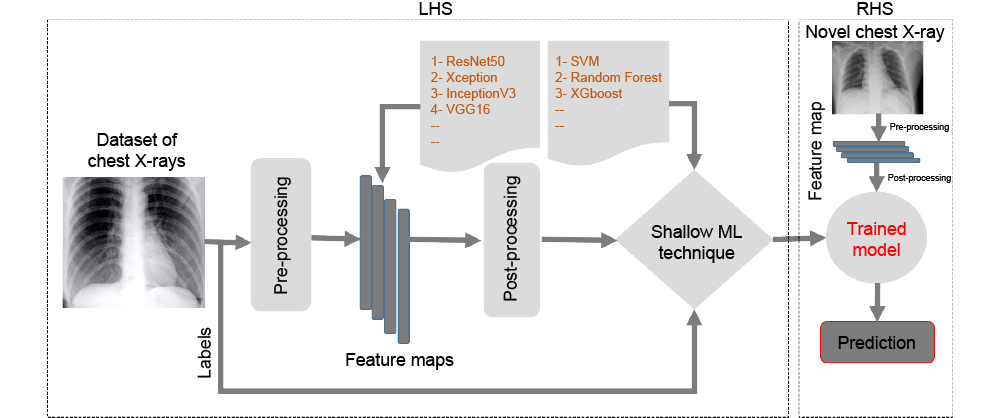 Method: In this study, we present an automatic COVID-19 diagnostic and severity prediction system (COVIDX) that uses deep feature maps of CXR images along with classical machine learning algorithms to identify COVID-19 and forecast its severity. The proposed system uses a three-phase classification approach (healthy vs unhealthy, COVID-19 vs pneumonia, and COVID-19 severity) using different conventional supervised classification algorithms.