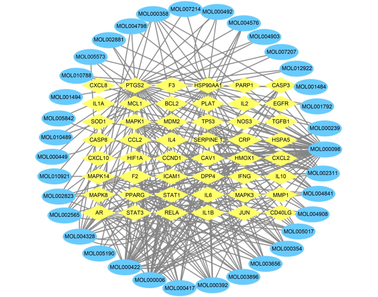 Results: In this study, a total of 134 active ingredients and 229 related targets, 198 targets of COVID-19 and 48 common targets of drug-disease were chosen. Enrichment items and pathways were obtained through GO and KEGG pathway analysis. The predicted active ingredients were quercetin, kaempferol, luteolin, naringenin, glycyrol, and the key targets involved IL6, MAPK3, MAPK8, CASP3, IL10, etc. The results showed that the active ingredients of Maxing Shigan Decoction acted on multiple targets which played roles in the treatment of COVID-19 by regulating inflammation, immune system and other pathways.