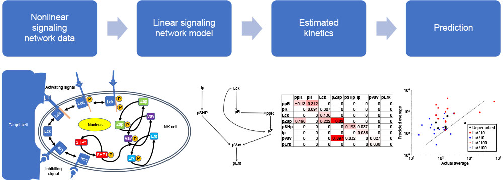 Results: We carry out a series of in silico experiments here to show (1) McSNAC is capable of accurately estimating the ground-truth model in a scalable manner when given data originating from a first-order system; (2) McSNAC is capable of qualitatively predicting outcomes to perturbations of species abundances in simple second-order reaction models and in a complex in silico nonlinear signaling network in which some proteins are unmeasured.