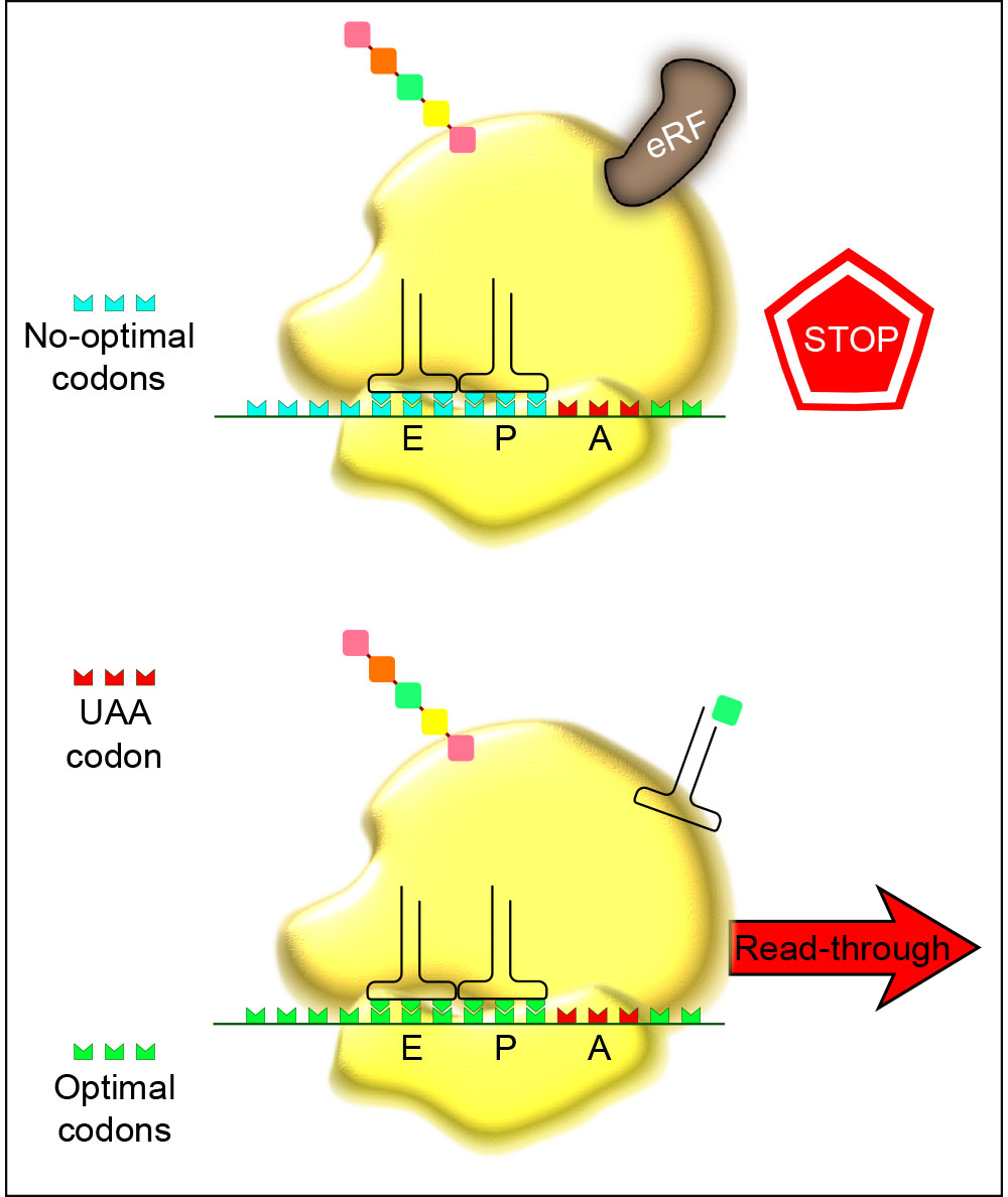 Background: A key step in gene expression is the recognition of the stop codon to terminate translation at the correct position. However, it has been observed that ribosomes can misinterpret the stop codon and continue the translation in the 3′UTR region. This phenomenon is called stop codon read-through (SCR). It has been suggested that these events would occur on a programmed basis, but the underlying mechanisms are still not well understood.