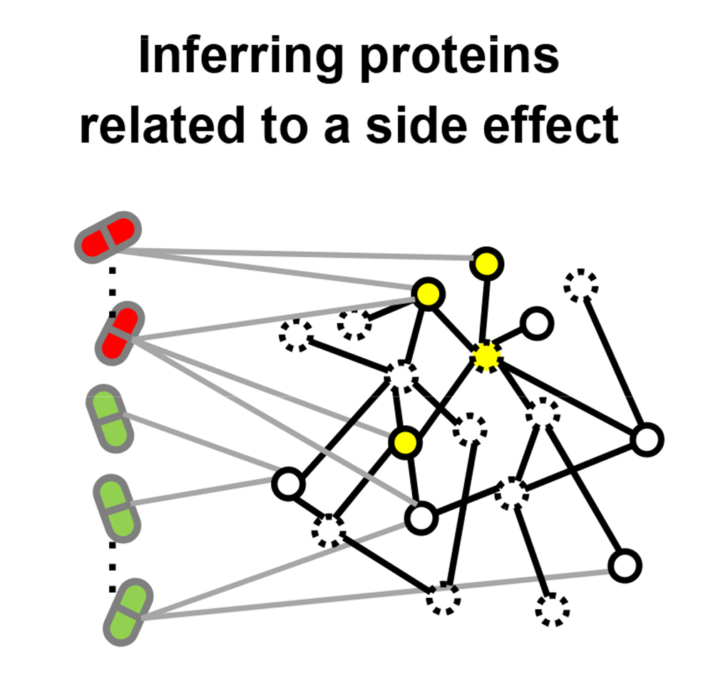 Studying the molecular mechanisms that underlie the relationship between drugs and the side effects they produce is critical for drug discovery and drug development. Currently, however, computational methods are still unavailable to assess drug-protein interactions with the aim of globally inferring the contributions of various classes of proteins toward the etiology of side effects. In this work, we integrated data reflecting drug-side effect relationships, drug-target relationships, and protein-protein interactions to develop a novel network-based probabilistic model, SidePro, to evaluate the contributions of proteins toward the etiology of side effects. For a given side effect, the method applies an expectation---maximization algorithm and a diffusion kernel-based approach to estimate each protein’s contribution. We applied this method to a wide range of side effects and validated the results using cross-validation and records from the Side Effect Resource database. We also studied a specific side effect, nephrotoxicity, which is known to be associated with the irrational use of the Chinese herbal compound triptolide, a diterpenoid epoxide in the Thunder of God Vine, <?A3B2 tf="Times New Roman Bold Italic (TrueType)"?>Tripterygium wilfordii Lei-Gong-Teng. Using triptolide as an example, we scored the target proteins of triptolide using our model and investigated the high-scoring proteins and their related biological processes. The results demonstrated that our model could differentiate between the potential side effect targets and therapeutic targets of triptolide. Overall, the proposed model could accurately pinpoint the molecular mechanisms of drug side effects, thus making contribution to safe and effective drug development.
