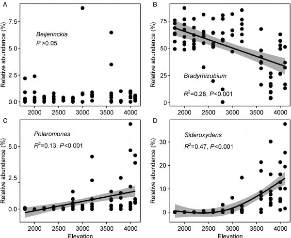 Mountain systems are unique for studying the responses of species distribution and diversity to environmental changes along elevational gradients. It is well known that free-living diazotrophic microorganisms are important to nitrogen cycling in mountain systems. However, the elevational patterns of free-living diazotrophs and the underlying ecological processes in controlling their turnover along broader gradients are less well documented. Here, we investigated the pattern of diazotrophic diversity along the elevational gradient (1800 m–4100 m) in Mount Gongga of China. The results showed that the α-diversity of diazotrophs did not change with the elevation from 1800 m to 2800 m, but decreased at elevations above 3000 m. Such diversity pattern was driven mainly by soil total carbon, nitrogen, and plant richness. Various diazotrophic taxa showed differential abundance-elevation relationships. Ecological processes determining diazotrophic community assemblage shift along the elevations. Deterministic processes were relatively stronger at both low and high elevations, whereas stochastic processes were stronger at the middle elevation. This study also suggested a strong relationship among aboveground plants and diazotrophs, highlighting their potential interactions, even for free-living diazotrophs.