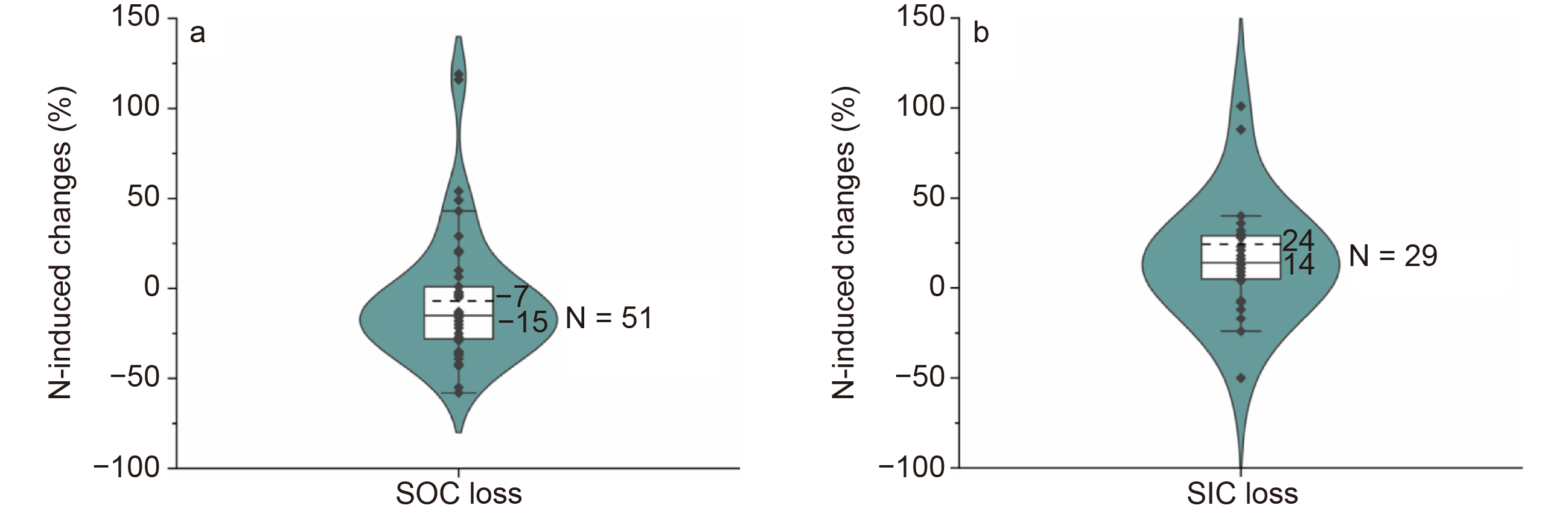Biochar addition generally increases the alkalinity regeneration to resist soil acidification driven by nitrogen (N) fertilization. Calcareous soils contain soil organic carbon (SOC) and inorganic C (SIC). Owing to technical limitations in three-source partitioning CO2, how biochar addition affects SOC- and SIC-derived CO2 emission has not been clarified yet. Therefore, we conducted a 70-day incubation experiment of ammonium-N and maize-straw-derived biochar additions to investigate the N plus biochar impacts on SOC- and SIC-derived CO2 emission. Over the 70-day incubation, we found that the N-only addition increased the SIC-derived CO2 emission by approximately 41% compared with the control, but decreased the SOC-derived CO2 emission by approximately 20%. This suggests that the distinct responses of SIC- and SOC-derived CO2 emission to N-only addition come from N-induced acidification and preferential substrate (N) utilization of soil microorganisms, respectively. Compared with N-only addition, N plus biochar addition decreased the SIC-derived CO2 emission by 17%−20% during the first 20 days of incubation, but increased it by 54% during the next 50 days. This result suggested that biochar addition reduced the SIC-derived CO2 emission likely due to the alkalization capacity of biochar exceeding the acidification capacity of ammonium-N in the short term, but it may increase the SIC-derived CO2 emission induced by the weak acidity produced from biochar mineralization in the long term. This study is helpful to improve the quantification of CO2 emission from calcareous soils.