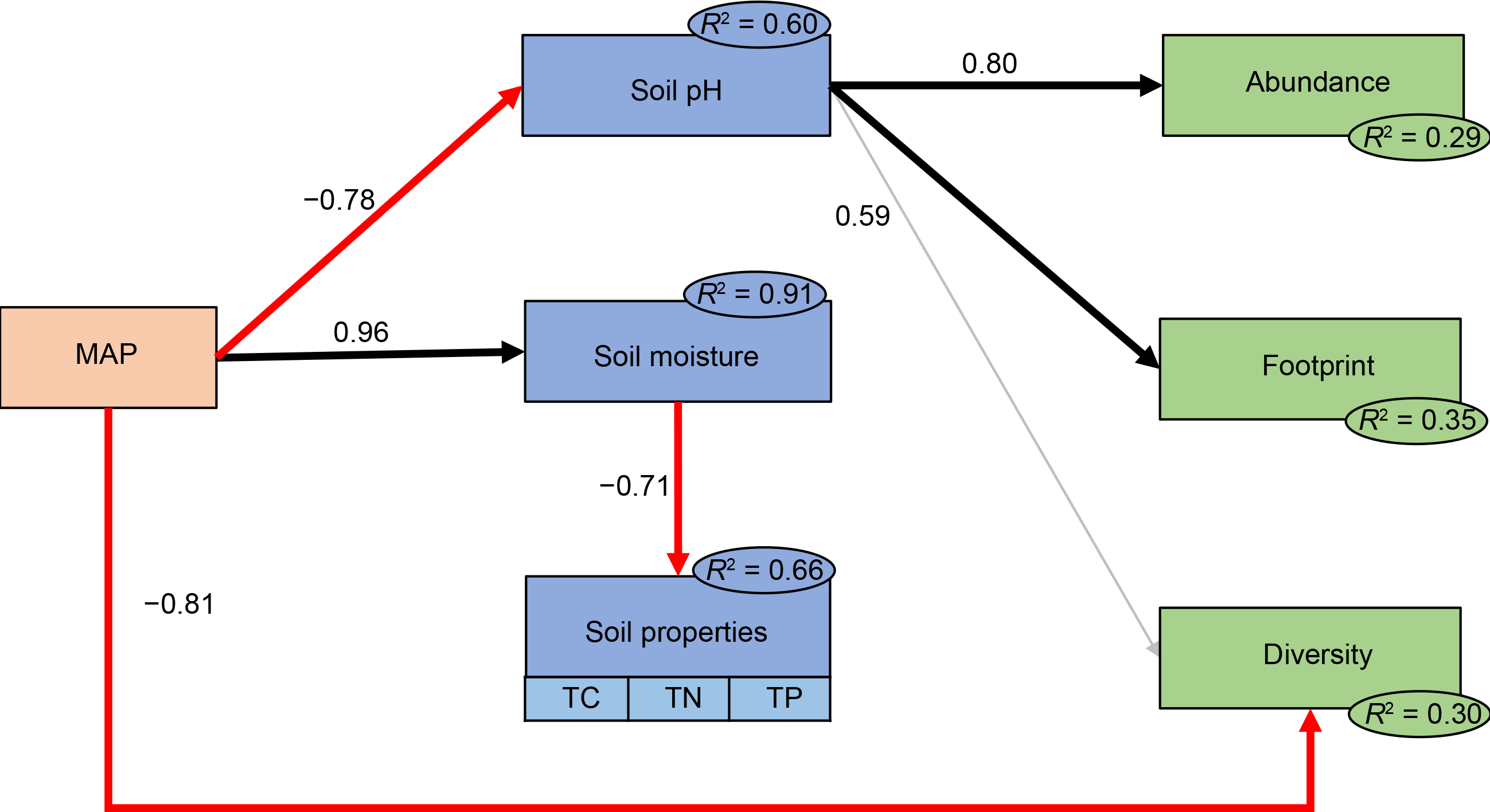 ● Nematode abundance and footprint show unimodal patterns with precipitation levels. ● MAP governed nematode diversity along the precipitation gradient of agroecosystem. ● Soil pH determined nematode abundance and footprint in low precipitation levels.