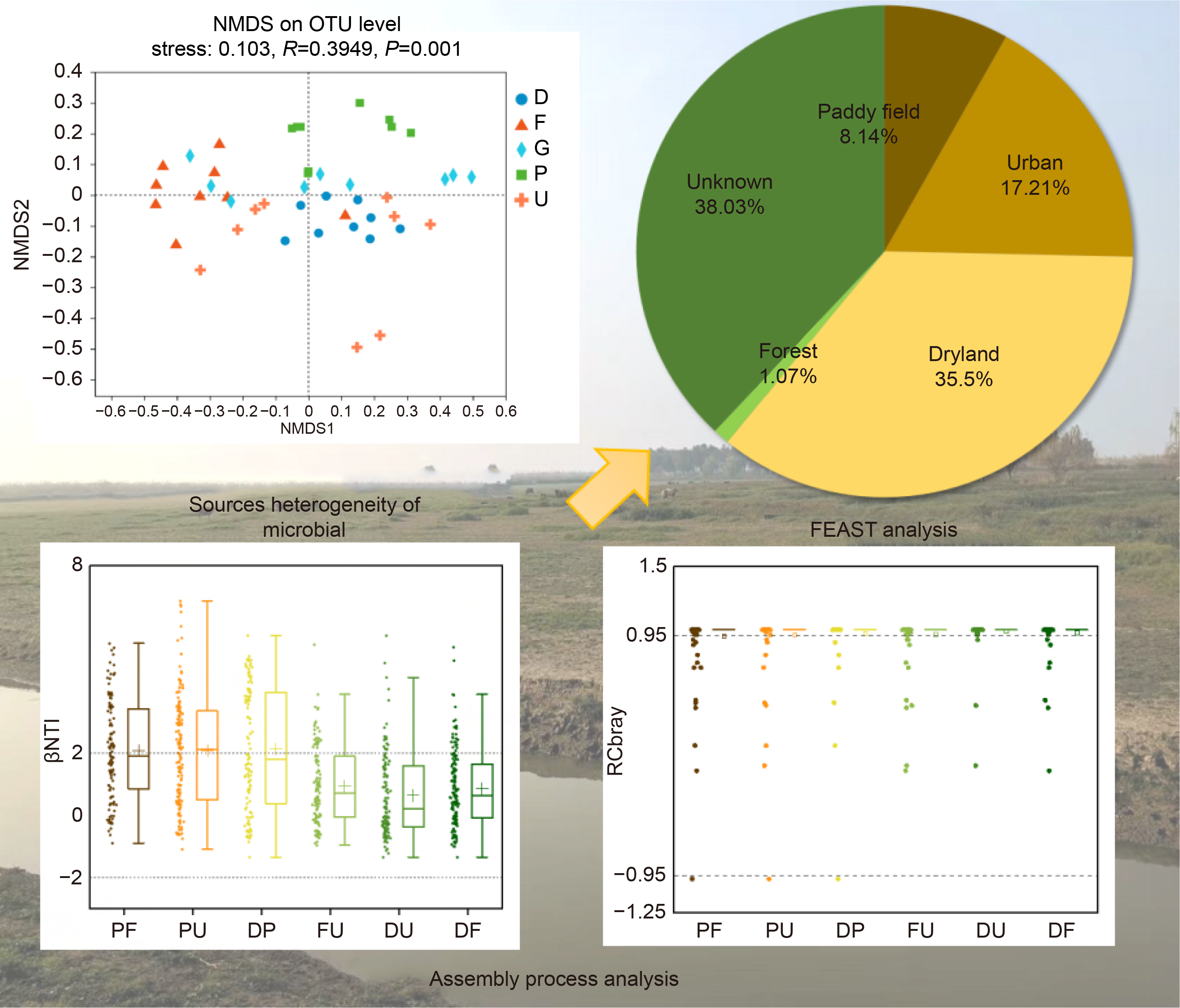 Sediment source tracing can accurately provide a theoretical basis for controlling soil erosion effectively, by identifying the most serious types of land use. Traditional sediment tracing methods are based on physical, chemical, biological, and composite fingerprinting, which have not included microbes. As high-throughput sequencing becomes more prevalent, microorganisms can provide more information than what we think. Thus, whether the microorganism can also be used as a special fingerprint factor for sediment source identification during soil erosion, we have tested it by using microbial source tracking tool FEAST to quantify the microbe contribution from five types of eroded land (including dryland, urban, paddy field, forest and grassland) to the depositional areas (Niubitan) in the Yuanjiang basin. The source microbial community in the erosive area was heterogeneous, and assembly process analysis further demonstrated that the source tracking results could reach higher accuracy. The results of FEAST showed that dryland (35.50%), urban (17.21%), paddy field (8.14%), and forest (1.07%) were the major contributors to Niubitan. Our results follow the general soil erosion rules and prove its validity. Taken together, a new perspective is provided by these results for tracing sediment sources in erosion-sedimentary systems.