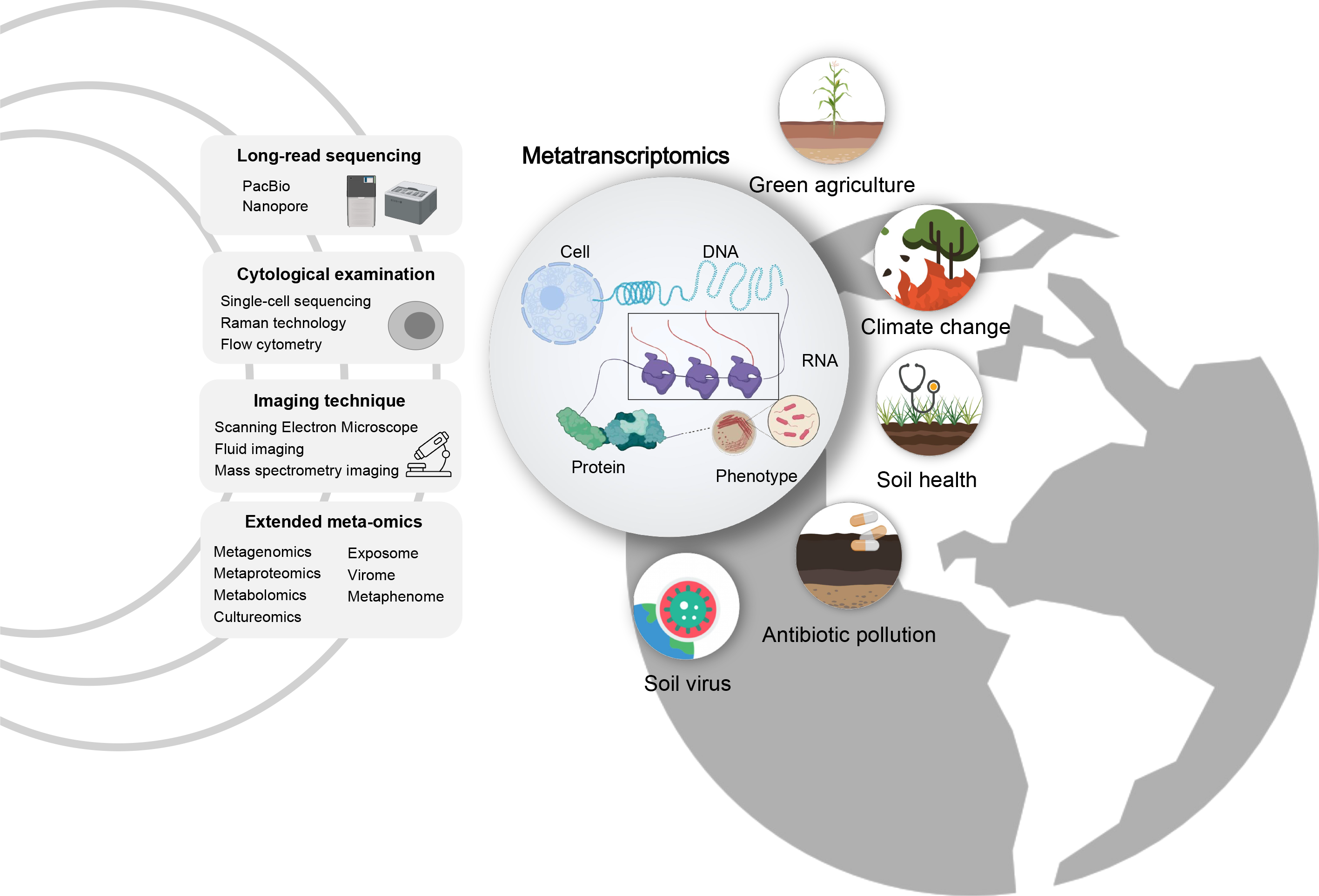 ● Metatranscriptomics uncovers the dynamic expression of functional genes in soil environments, providing insights into the intricate metabolic activities within microbial communities. ● mRNA enrichment from soil samples remains a formidable challenge due to the presence of inhibitory compounds, low RNA yields, and sample heterogeneity. ● Soil metatranscriptomics unravels the expression levels of genes involved in the real-time molecular dialogues between plants and rhizobionts, uncovering the dynamics of nutrient exchange, symbiotic interactions, and plant-microbe communication. ● Metatranscriptomics unlocks the active expression of the soil resistome, elucidating the mechanisms of resistance dissemination under anthropogenic activities. ● Metatranscriptomics provides comprehensive data regarding the identification, quantification, and evolutionary history of RNA viruses.