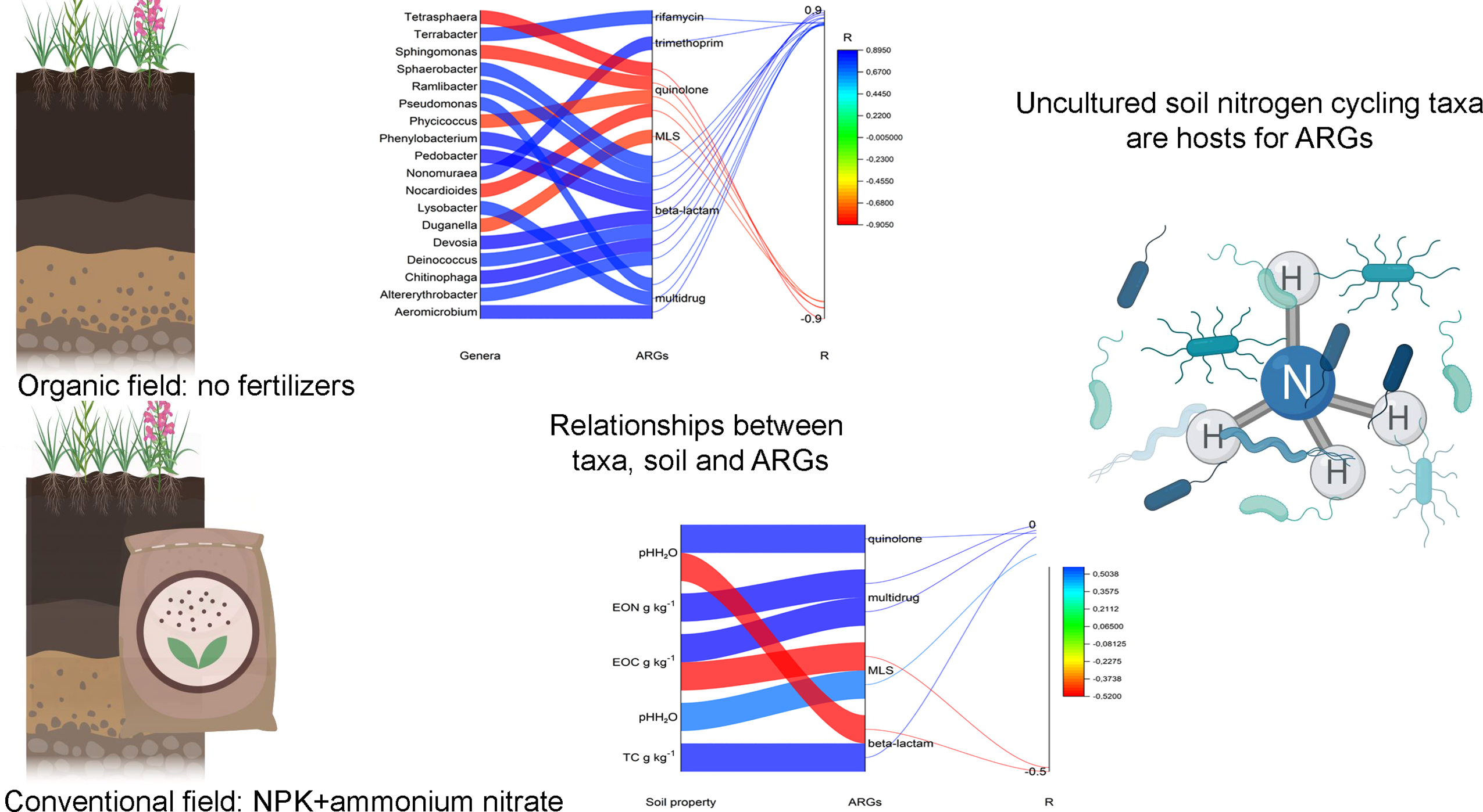 ● Soil resistomes of conventional and organic systems were similar in terms of ARG biodiversity. ● Soil resistomes of conventional and organic systems were different regarding individual ARGs. ● Uncultivated bacteria and archaea can contribute significantly to soil resistome.