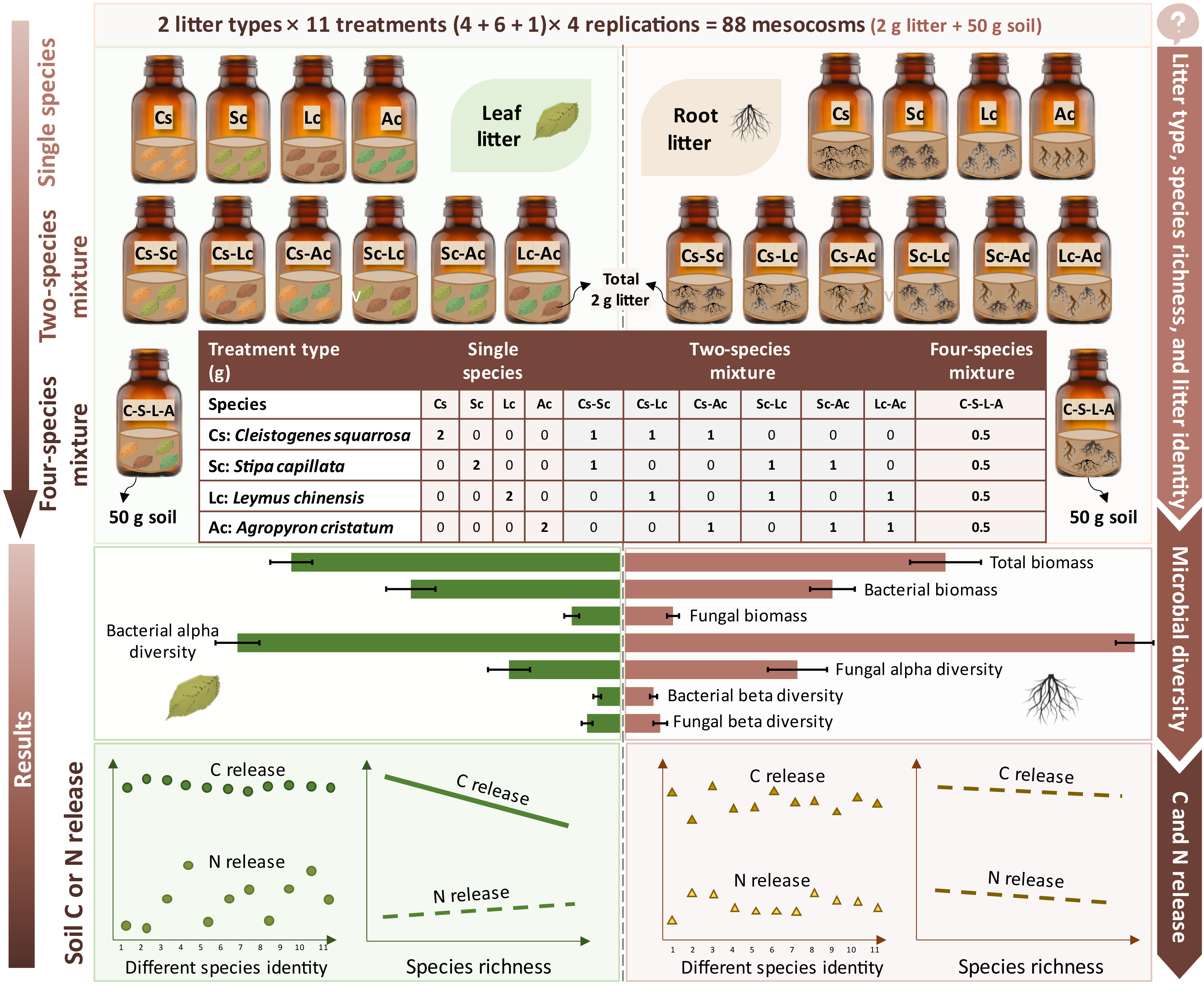 Divergent effects of root and leaf litter on soil microbial diversity decouple soil C-N release