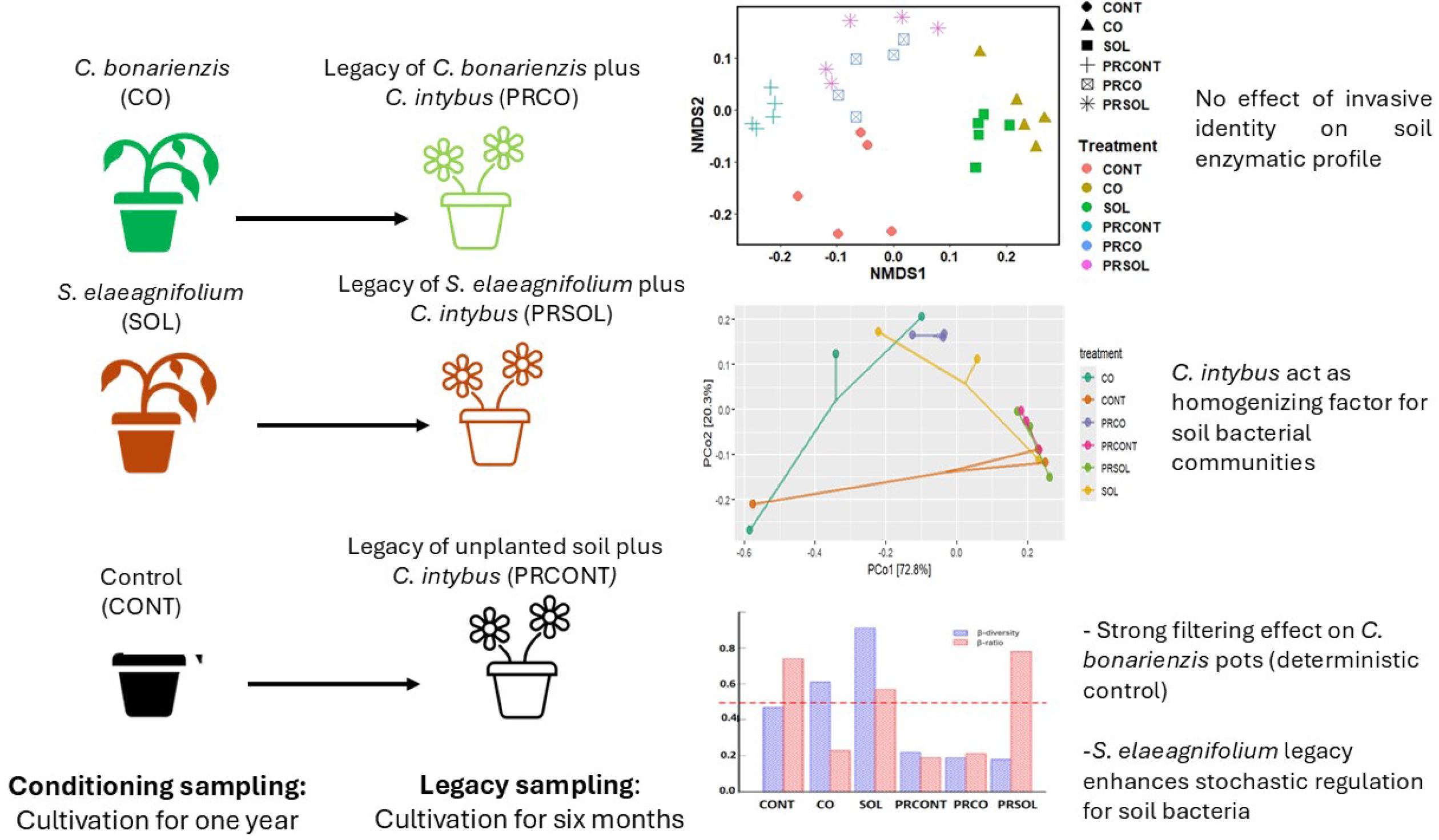 Legacy effects of invasive plant species on soil bacterial community assembly, β-diversity, and ecological interactions