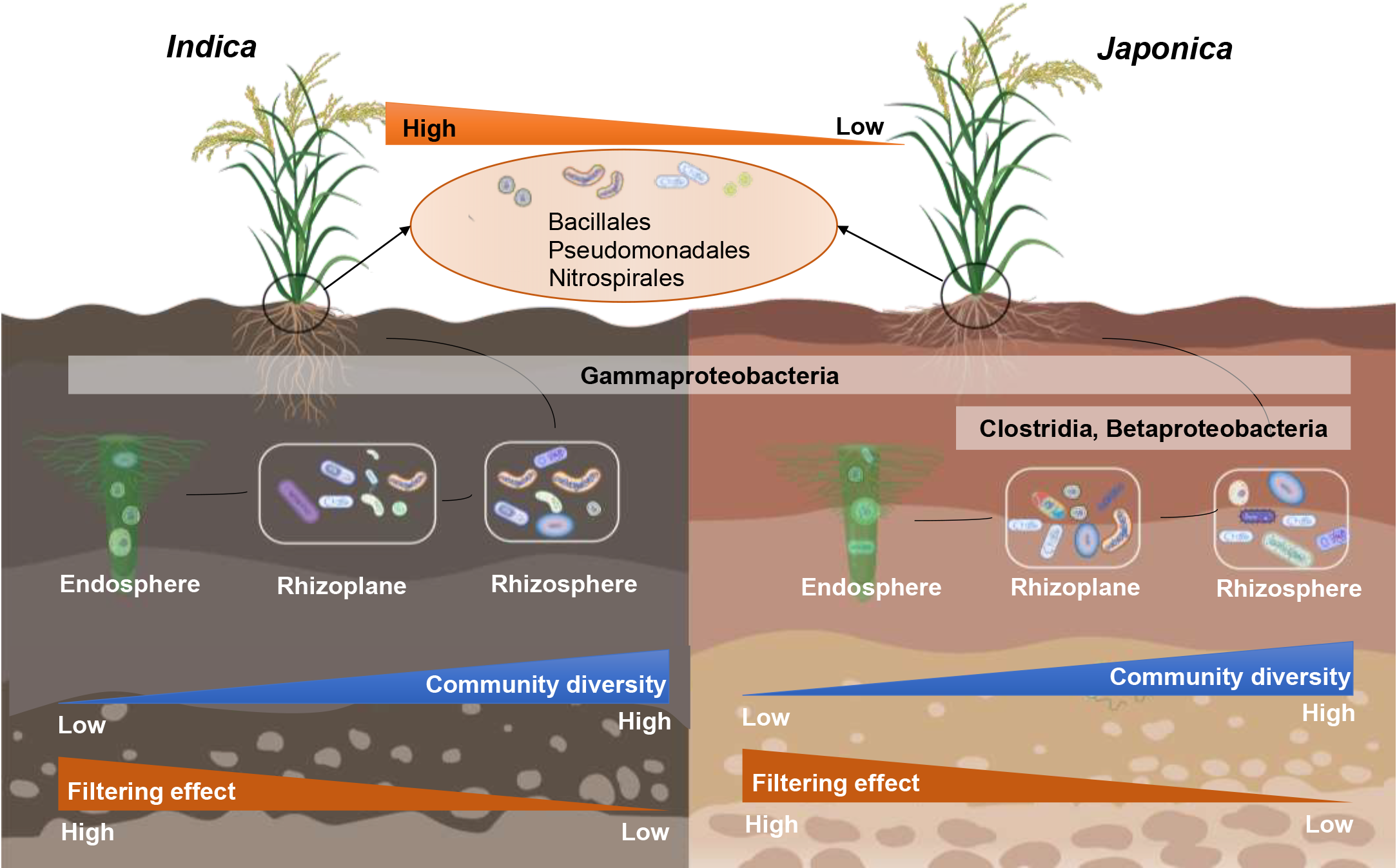 Host genotype-driven assembly of bacterial communities in the rice root microdomains