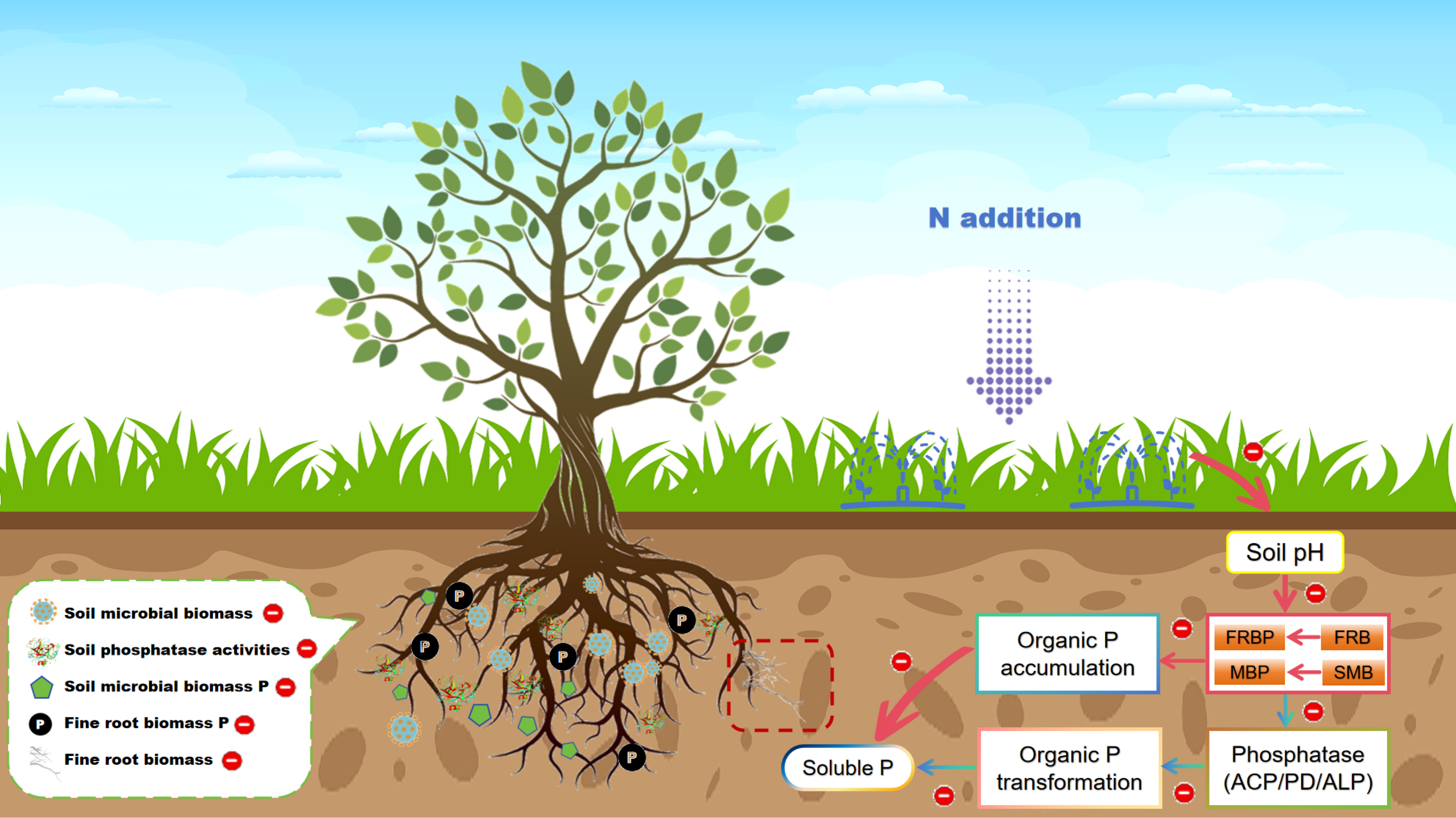 Eleven-year nitrogen addition exacerbates phosphorus limitation by reducing plant roots and soil microbial biomass in a temperate forest